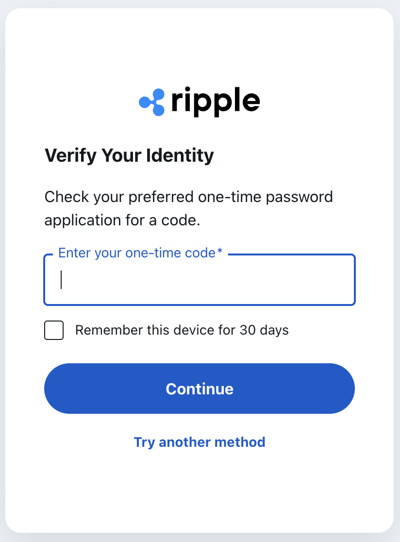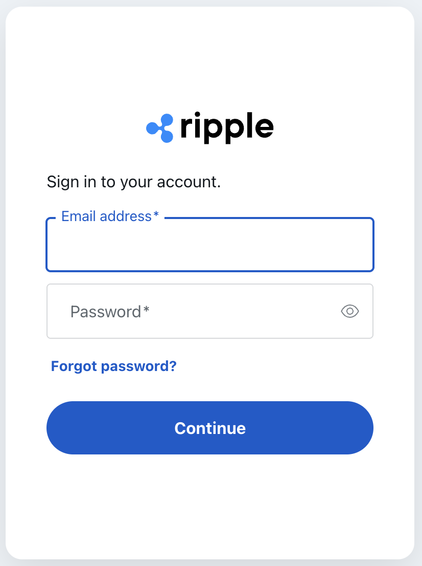All Ripple Payment products, as well as Ripple Stablecoin, use the same unified login process for both administrators and basic users, as well as for access to product support.